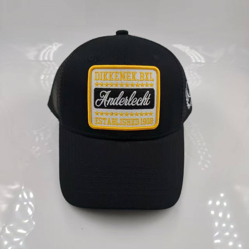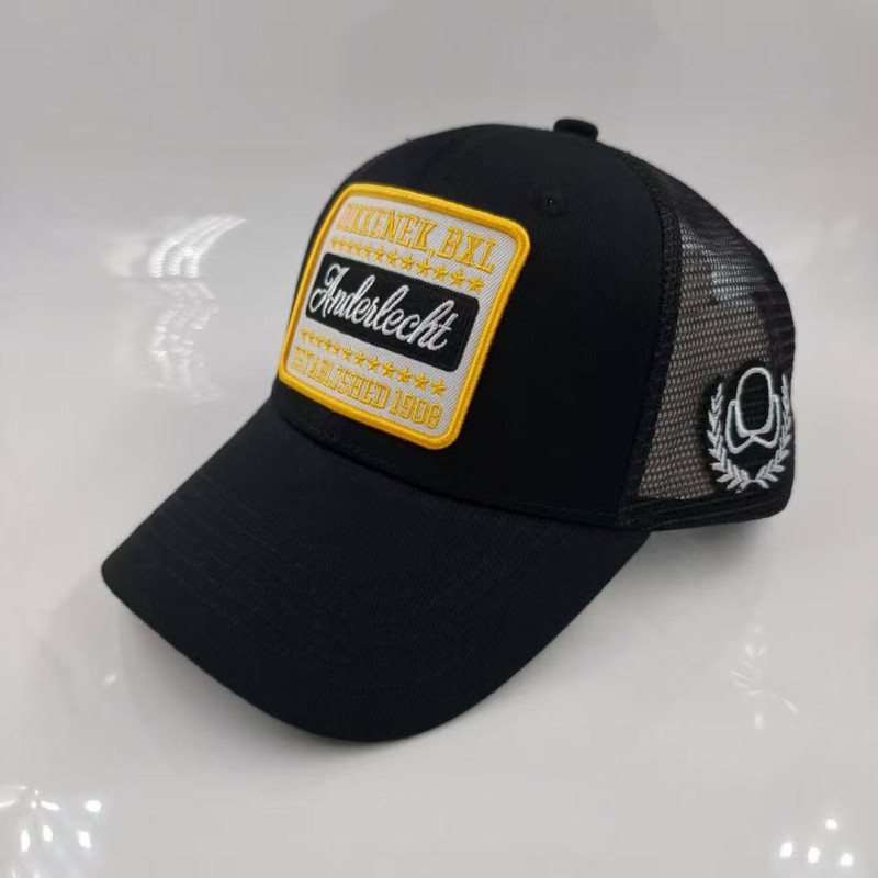 Black trucker cap with white patch with sunny edges!! 58 cm circonference and adjustable closing
